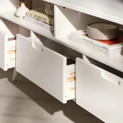 Cara Mid-Century Modern 3 Drawer Corner TV Stand For TVs Up To 58″ – Saracina Home