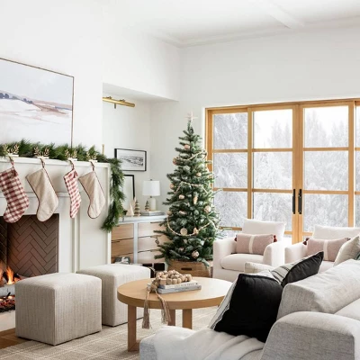 For an accent piece as comfy as it is eye-catching, you can’t go wrong with the Elroy Sherpa Accent Chair with Wood Legs from Threshold™ designed with Studio McGee. This accent chair is made extra cozy with thick cushions and a fleecy sherpa exterior, adding a unique spin and ultra soft feel. The neutral color palette makes this accent chair easy to incorporate into your space. Arrange near a couch draped with a sherpa blanket and add a textured throw pillow to create a cohesive setup.