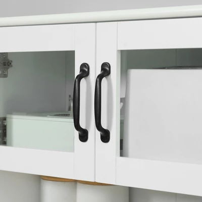 HOMCOM Freestanding Kitchen Pantry, 4-Door Buffet Cabinet With Hutch, Coffee Bar With Adjustable Shelves, 63.5 Inches, White